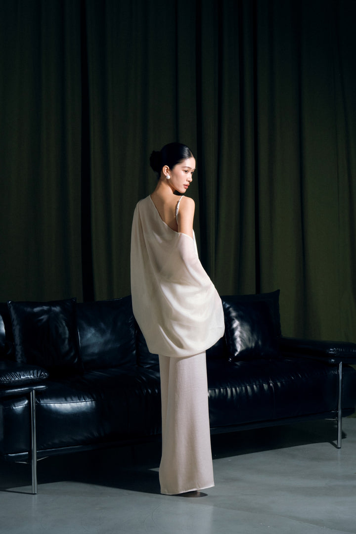 This sheer, lightweight chiffon cardigan adds an ethereal touch to any outfit. Its flowing silhouette and subtle texture make it an elegant layering piece for a variety of occasions.